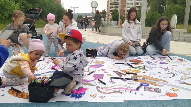 Подготовили и раскрасили с участниками праздника гигантскую раскраску, посвященную здоровому образу жизни и юбилею «Детско-юношеского центра».